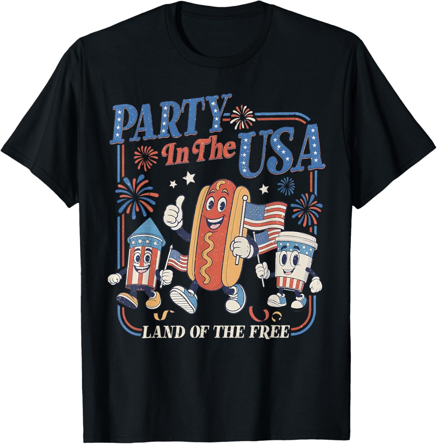 Retro Party In The USA Hot Dog Flag USA 4th Of July Party T-Shirt