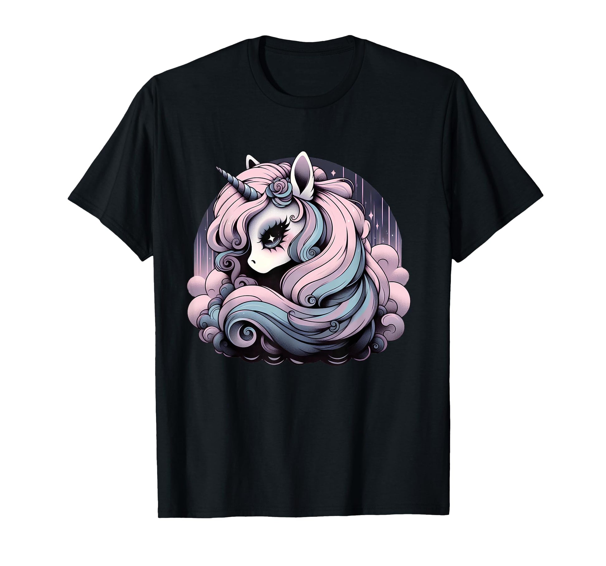 Pastel Goth Cutecore Unicorn Moon - Cute Pink Black Purple T-Shirt