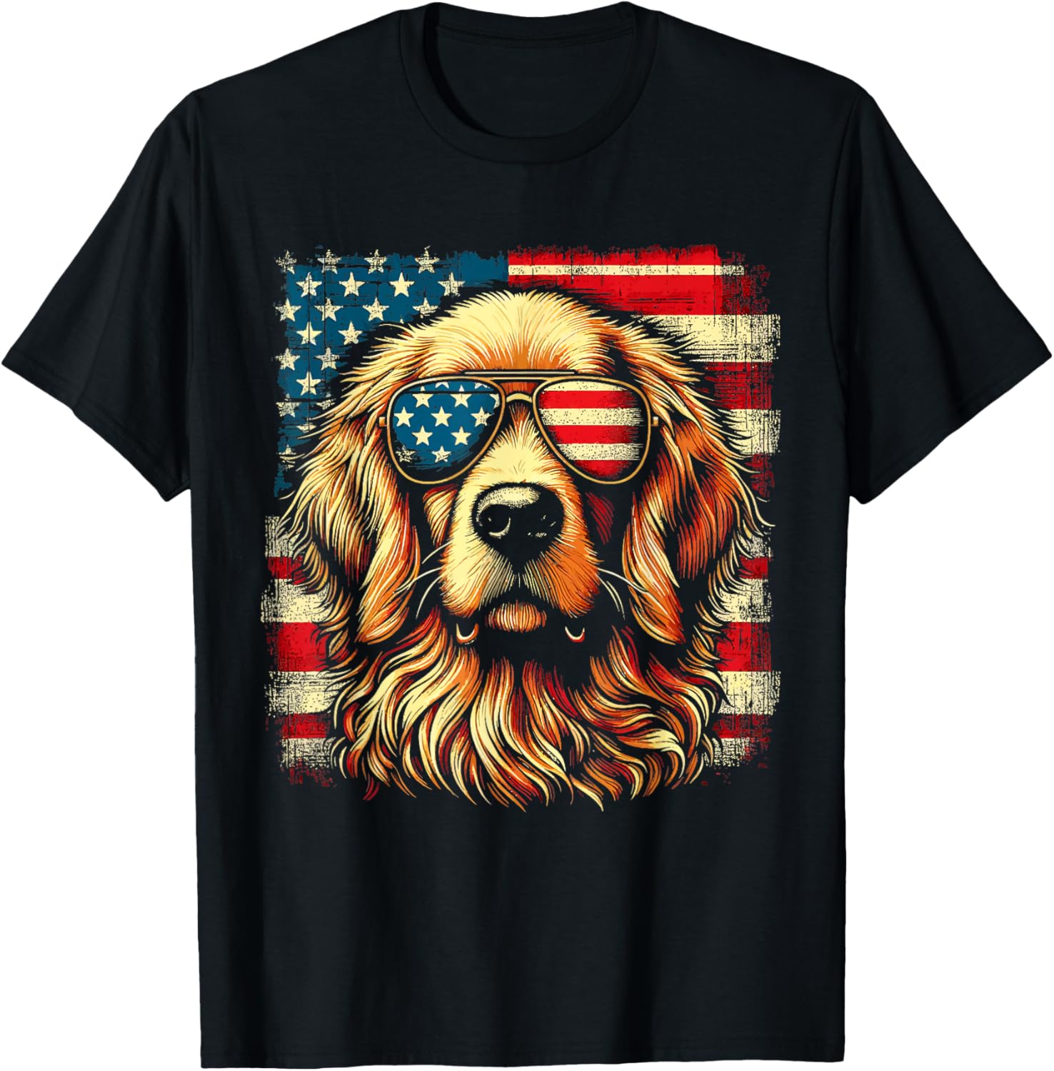 Golden Retriever Patriotic American US Flag 4th Of July T-Shirt