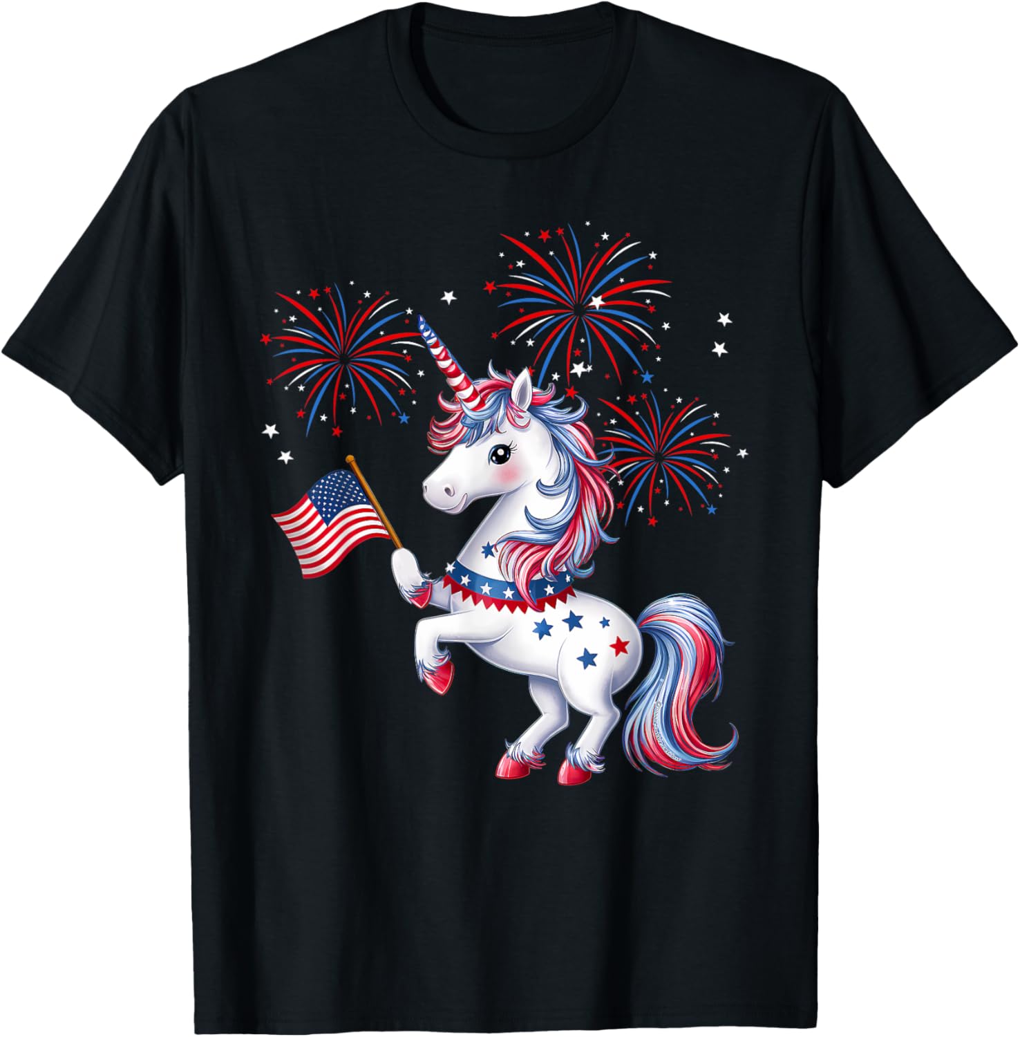 Cute Patriotic Americorn Unicorn Fireworks Girls 4th of July T-Shirt