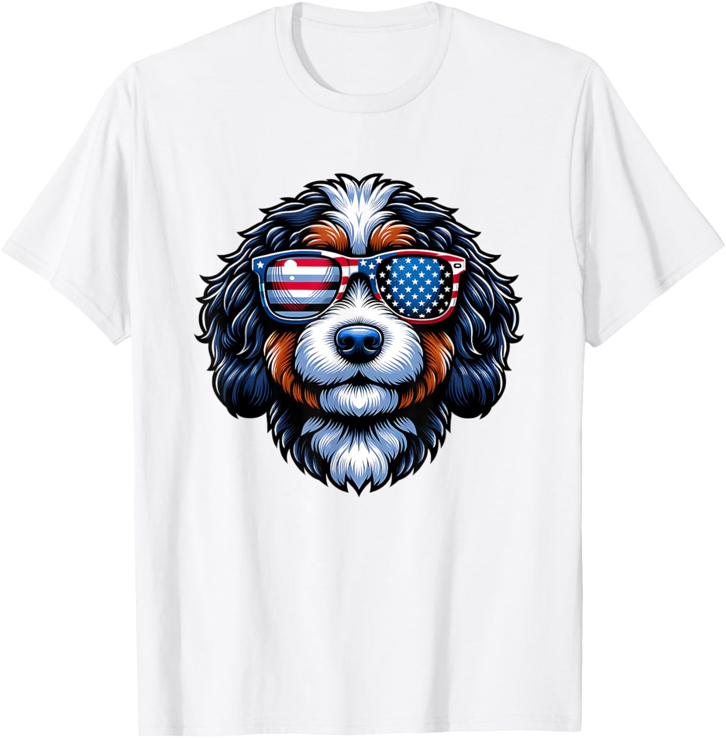 Patriotic Bernedoodle American Flag Sunglasses 4th of July T-Shirt