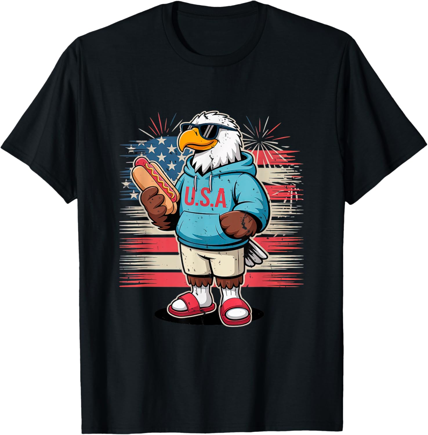 Patriotic Eagle Cartoon with Hot Dog for 4th of July Fun T-Shirt