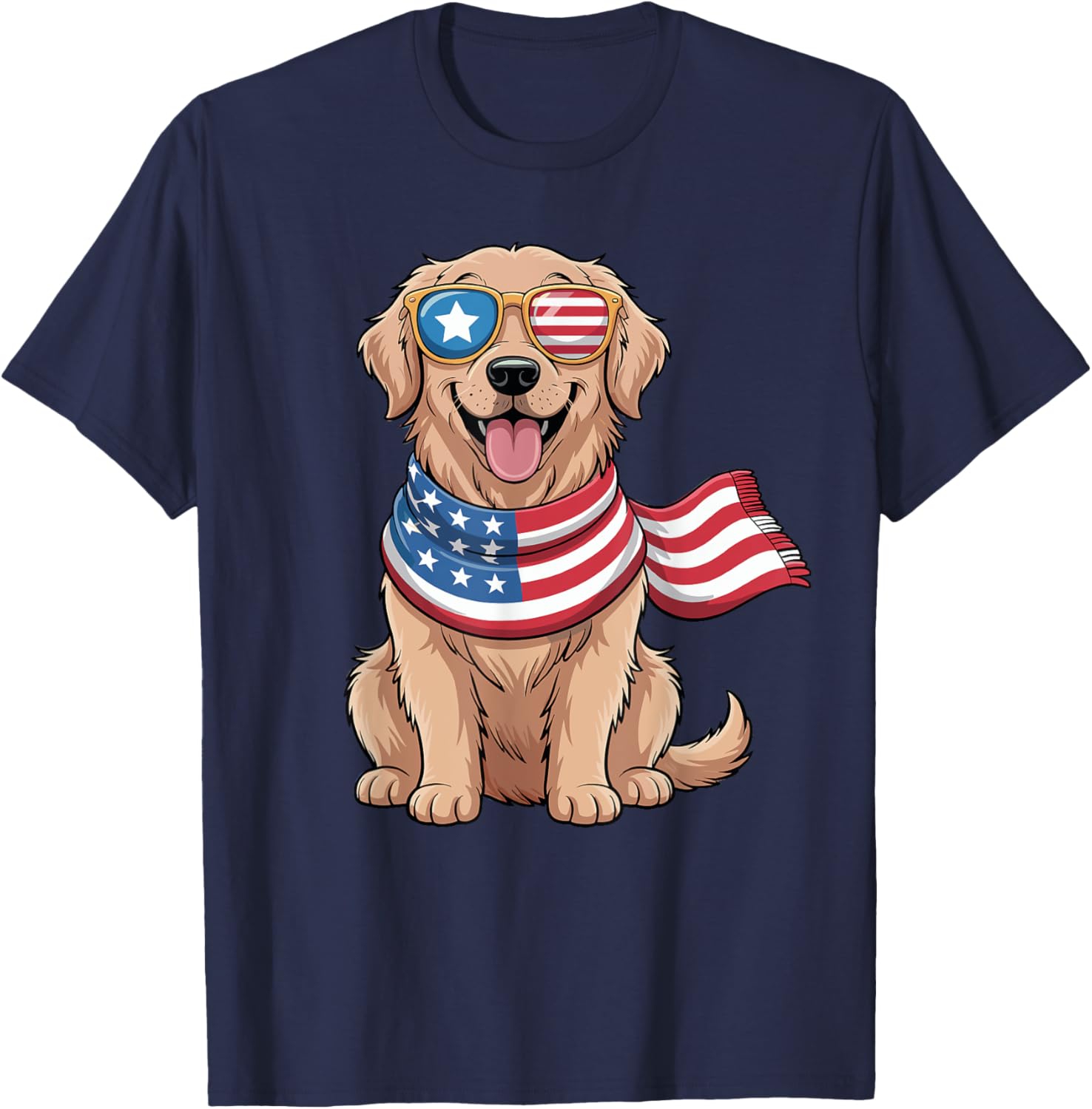 Patriotic Golden Retriever Dog American Flag 4Th Of July T-Shirt