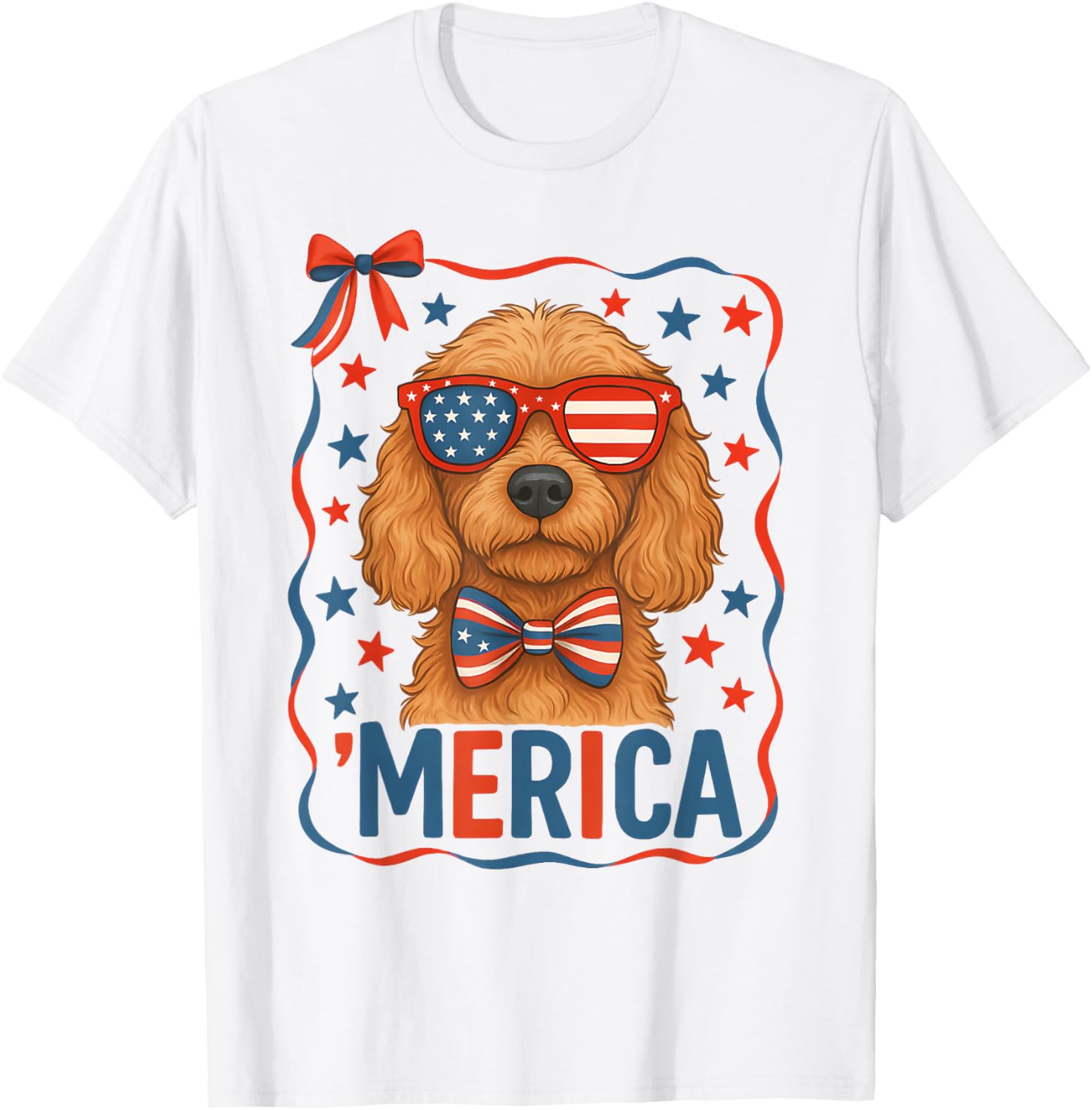Patriotic Goldendoodle Coquette Bow USA Flag 4th of July T-Shirt