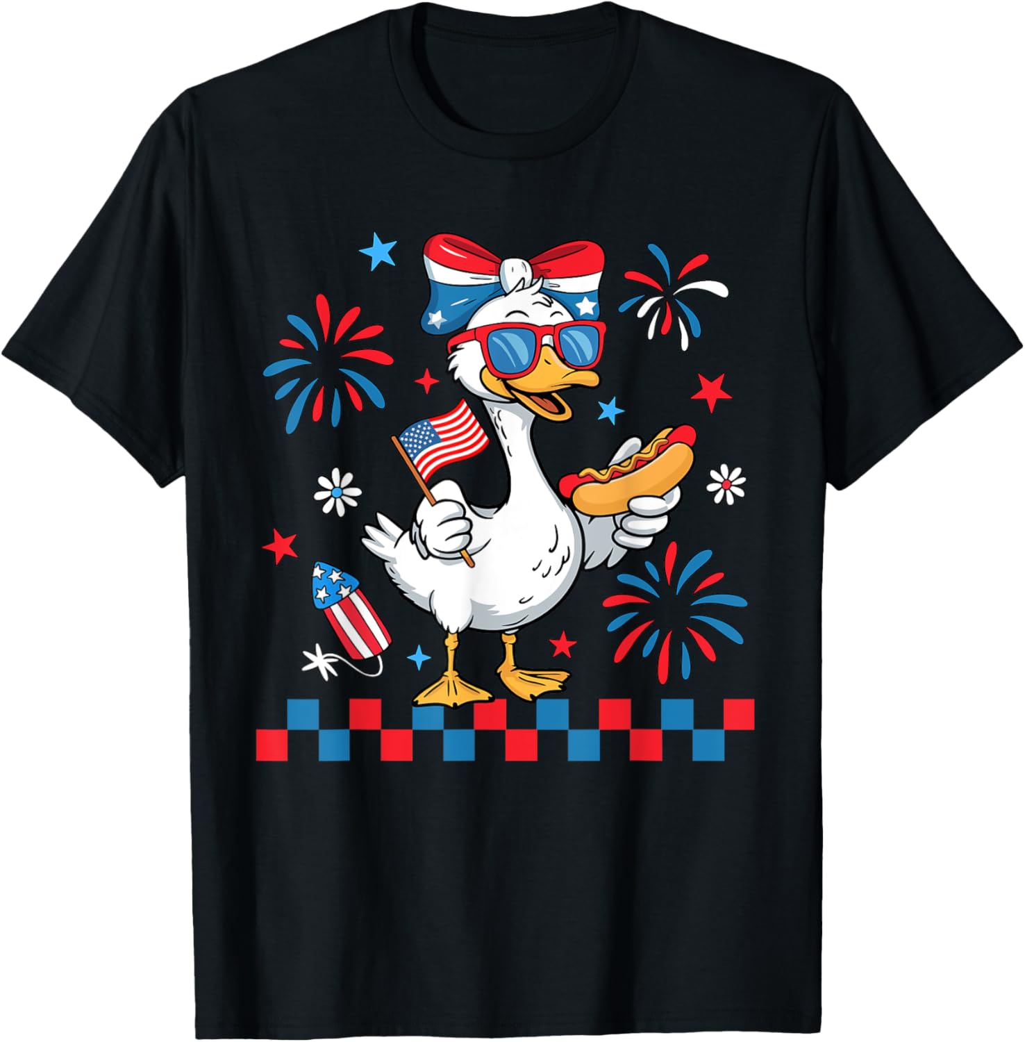 Cute Patriotic Goose Hotdog USA Flag Girls Kids 4th of July T-Shirt