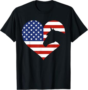 Patriotic Horse Lover 4th Of July Cool Heart American Flag T-Shirt