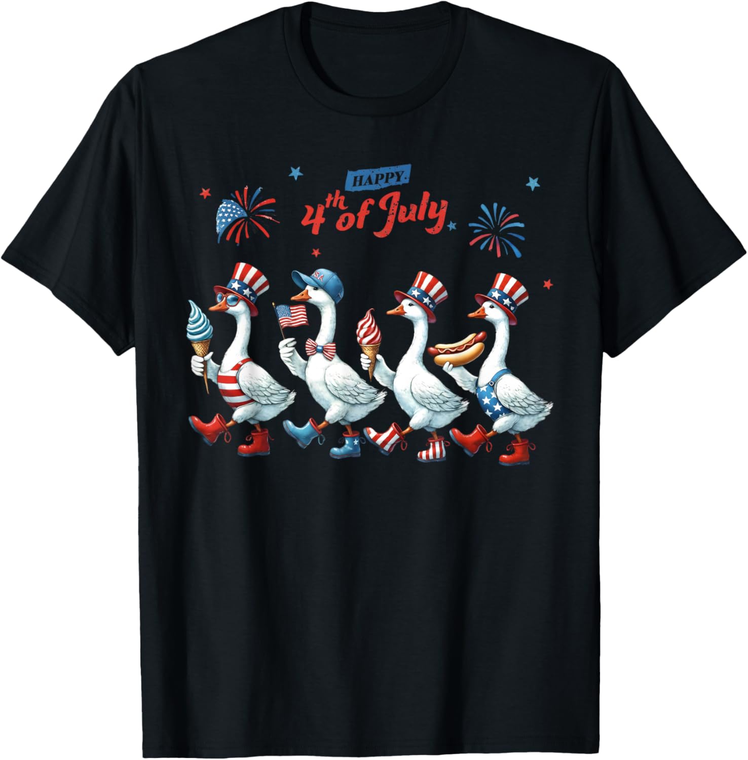 Patriotic Goose Parade Illustration for 4th of July T-Shirt