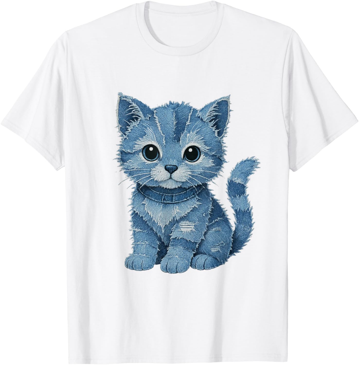 Cat pattern denim patchwork Funny Tee T-Shirt