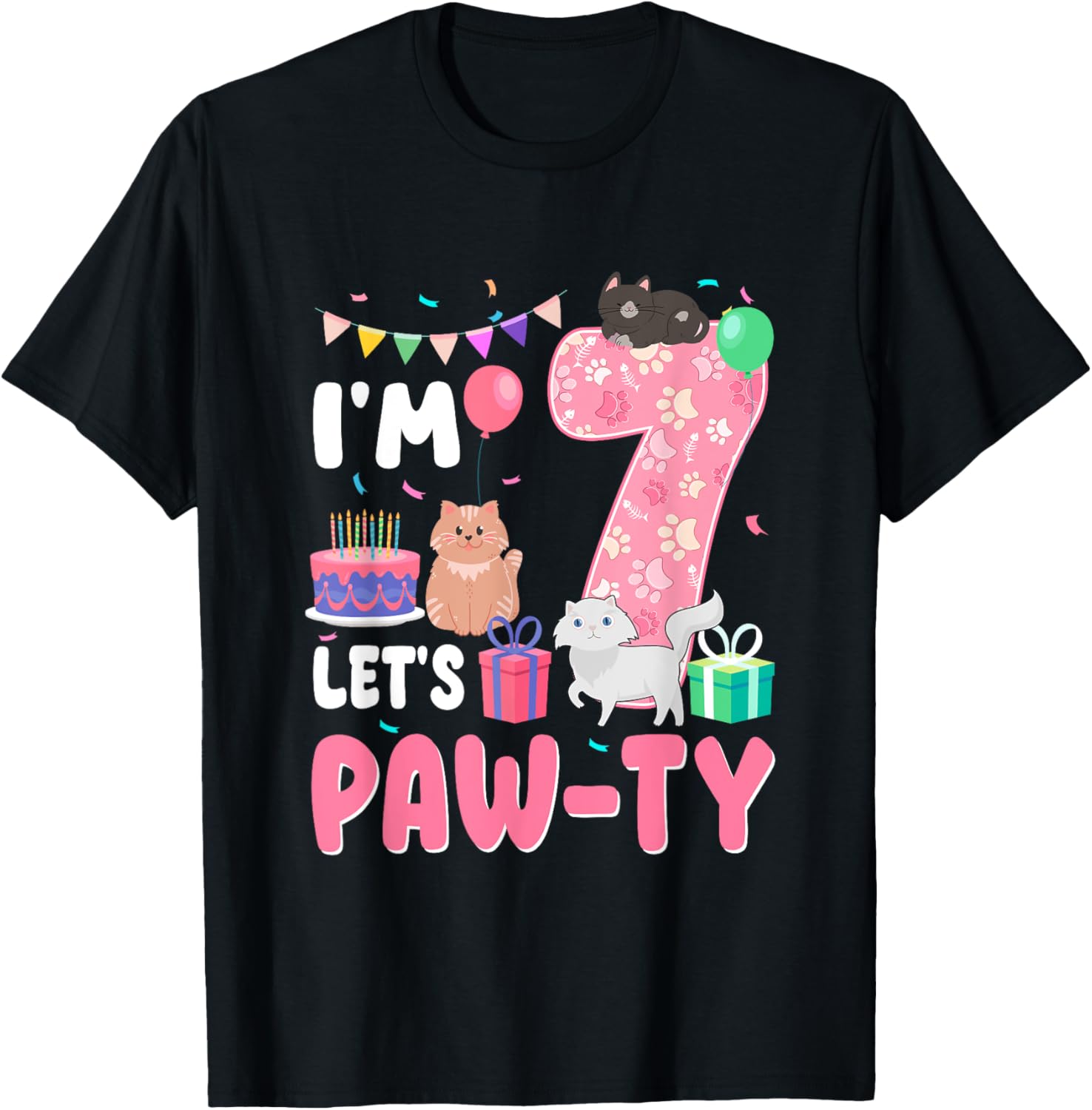 I'm 7 Let's Paw-Ty 7th Birthday Cats Lover 7 Year Old T-Shirt