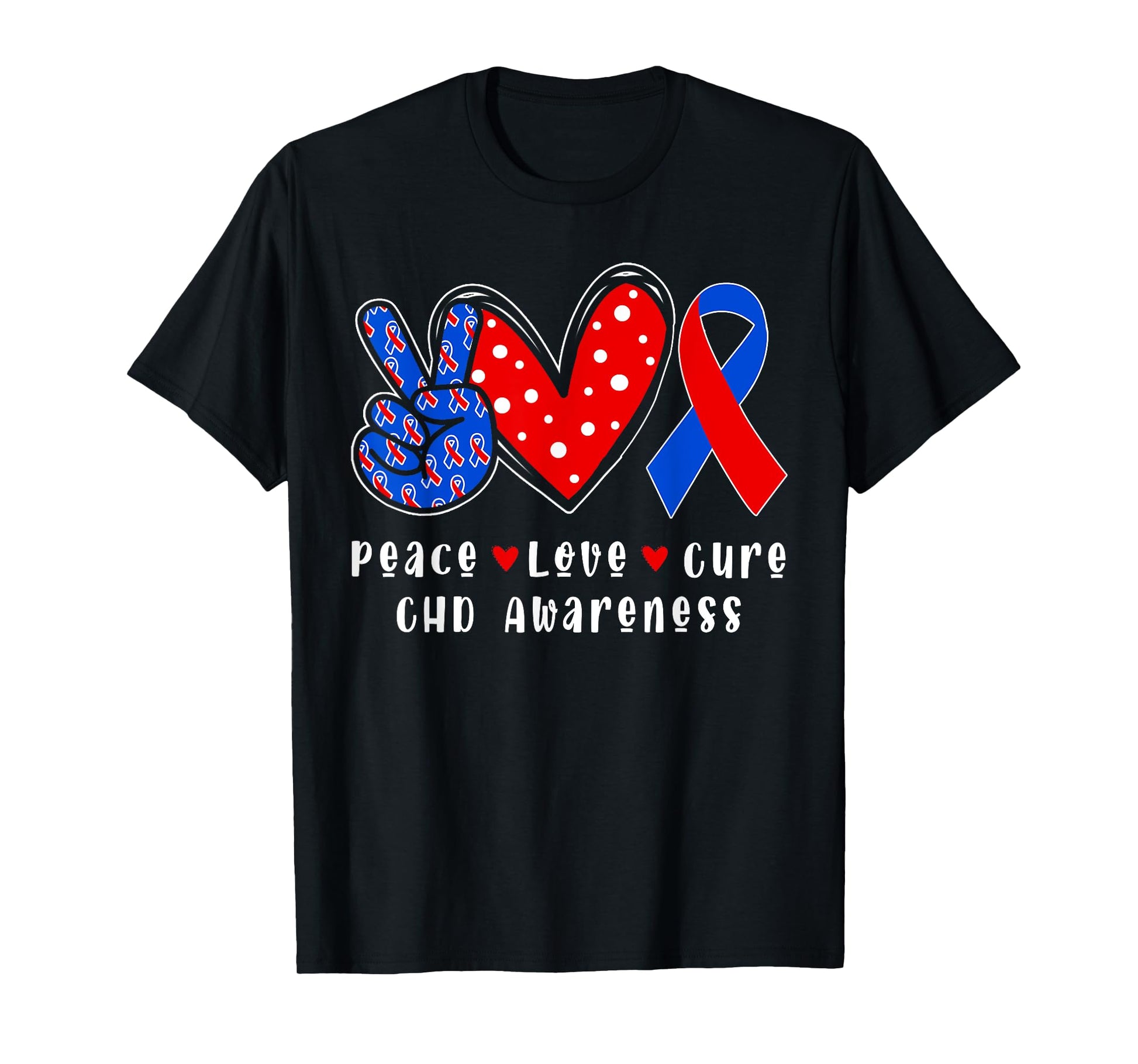 Peace Love Cure CHD Congenital Heart Defect Awareness Ribbon T-Shirt