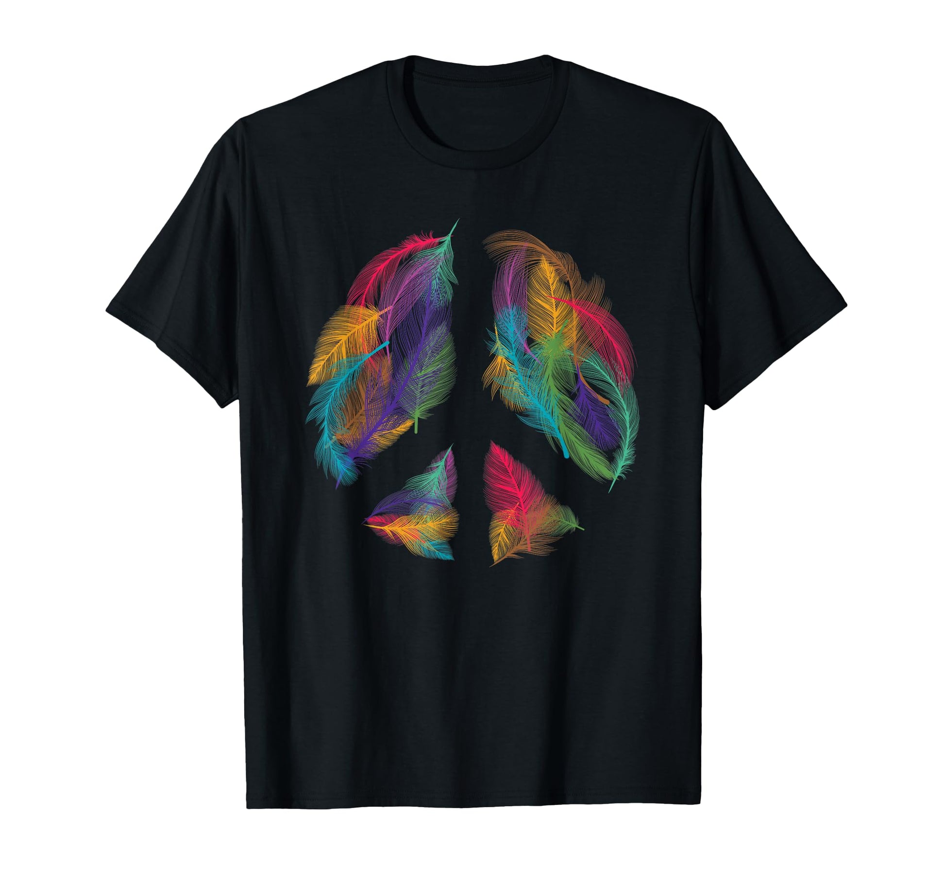 Peace Sign Colorful Feathers Hippie Peace Symbol Retro T-Shirt