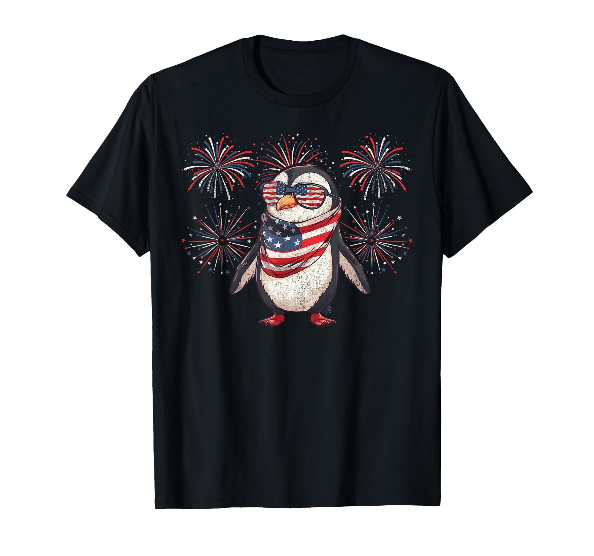 Penguin 4th Of July Sunglasses American Flag Fireworks T-Shirt
