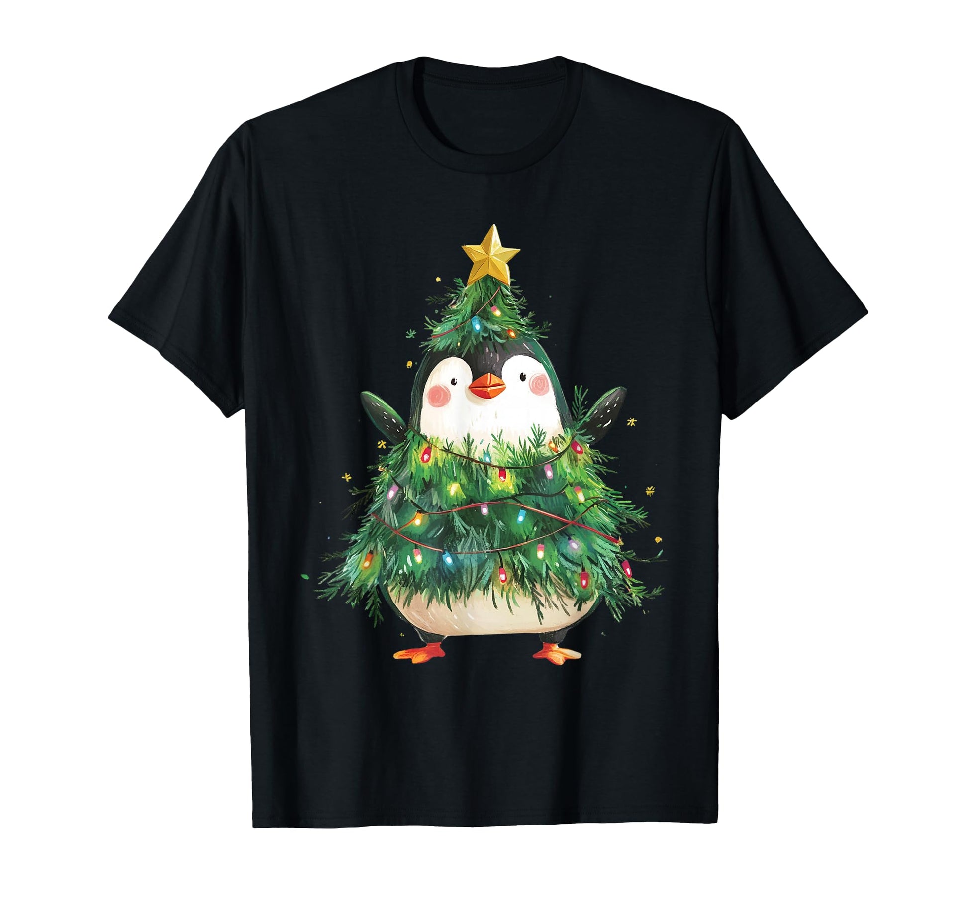Penguin Christmas Tree Pajamas Girls Boys Xmas Lights T-Shirt