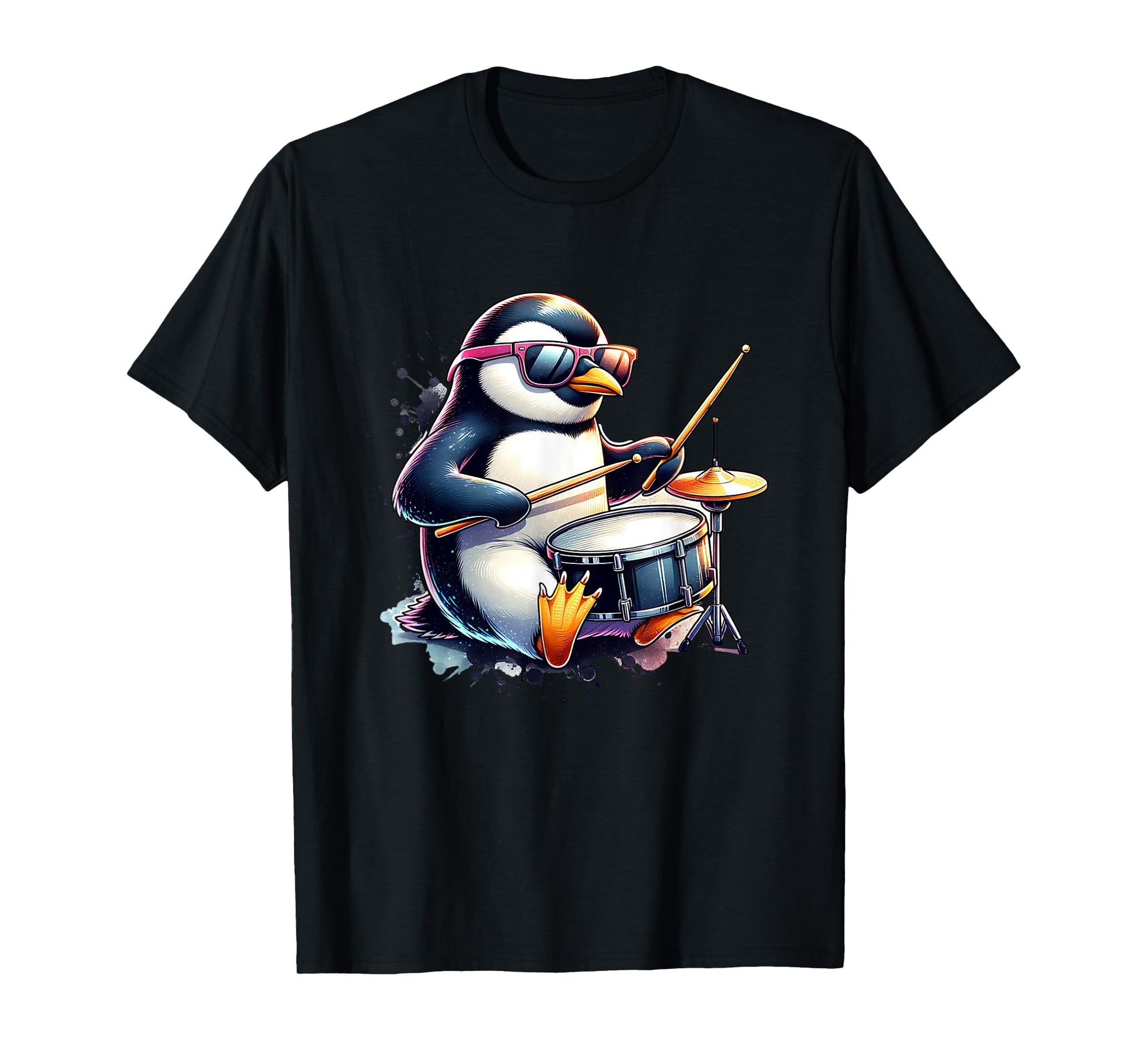 Penguin Drummer Music Rock Band With Drumsticks Playing T-Shirt