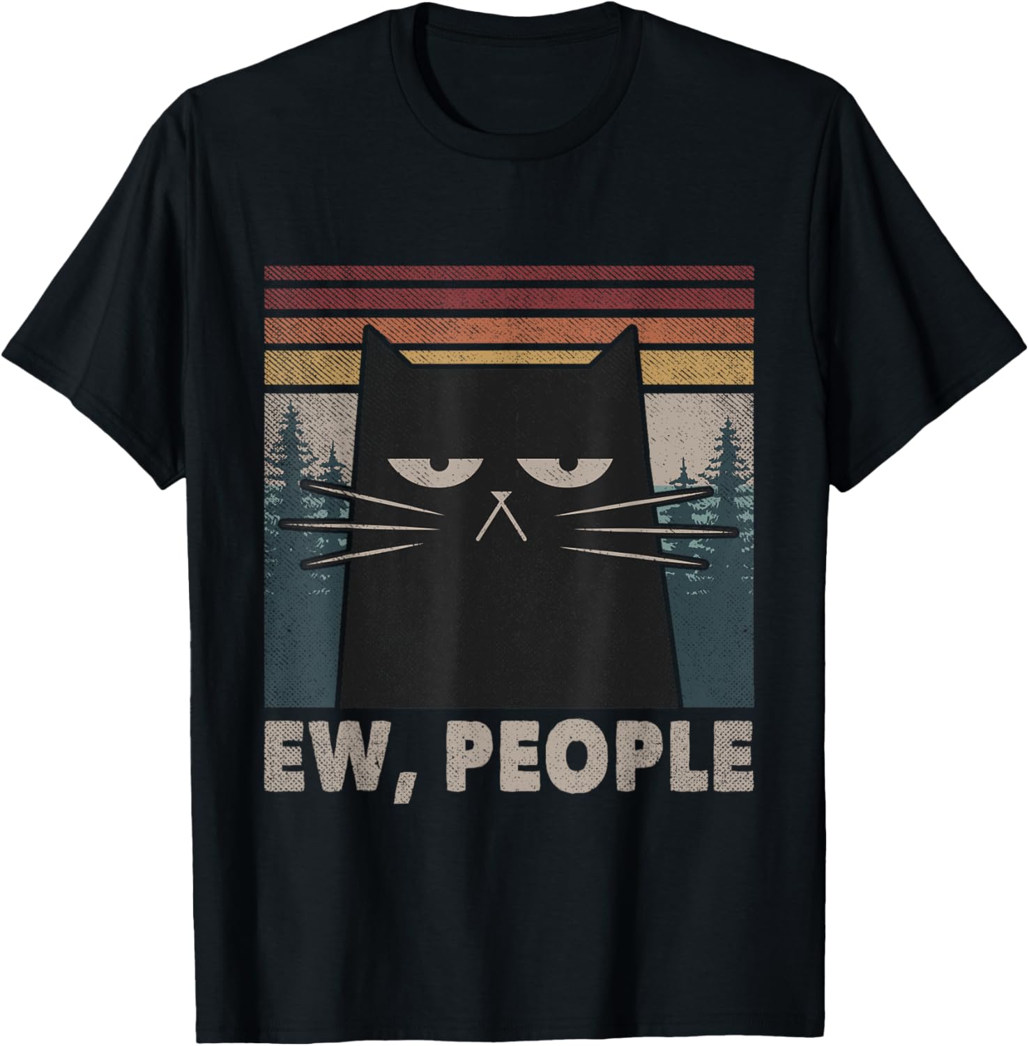Retro Ew People Black Cat Funny Anti Social Introvert T-Shirt