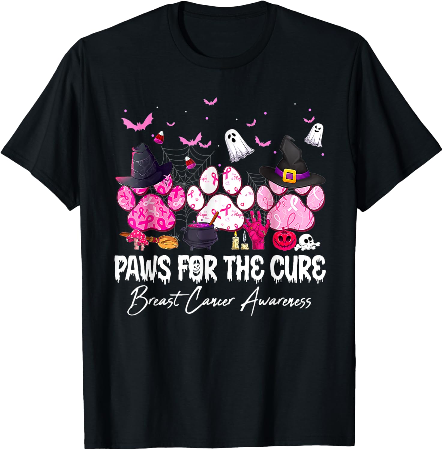 Pink Paws For The Cure Breast Cancer Awareness Dog Cat Lover T-Shirt