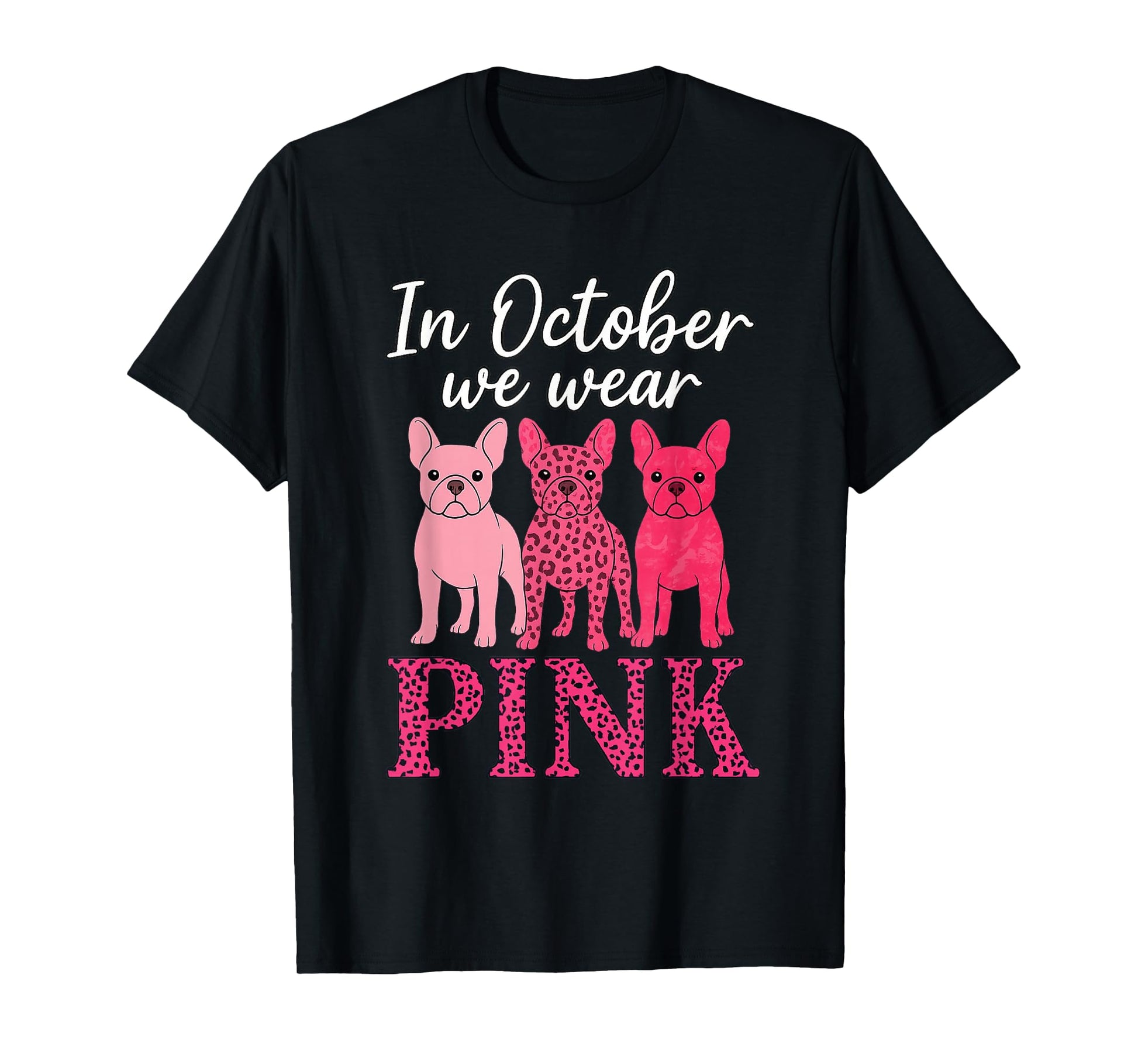 Pink Leopard Breast Cancer Awareness French Bulldog T-Shirt