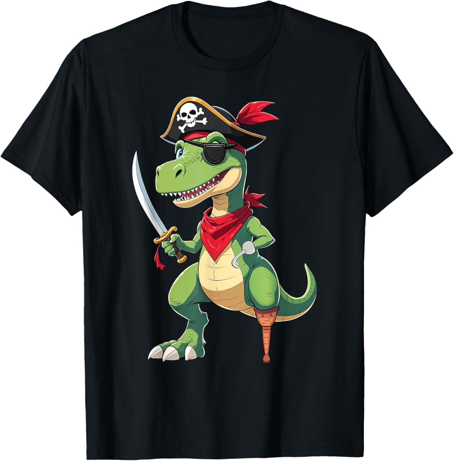 Pirate Dinosaur T Rex Funny Kids Boys Halloween Costume T-Shirt