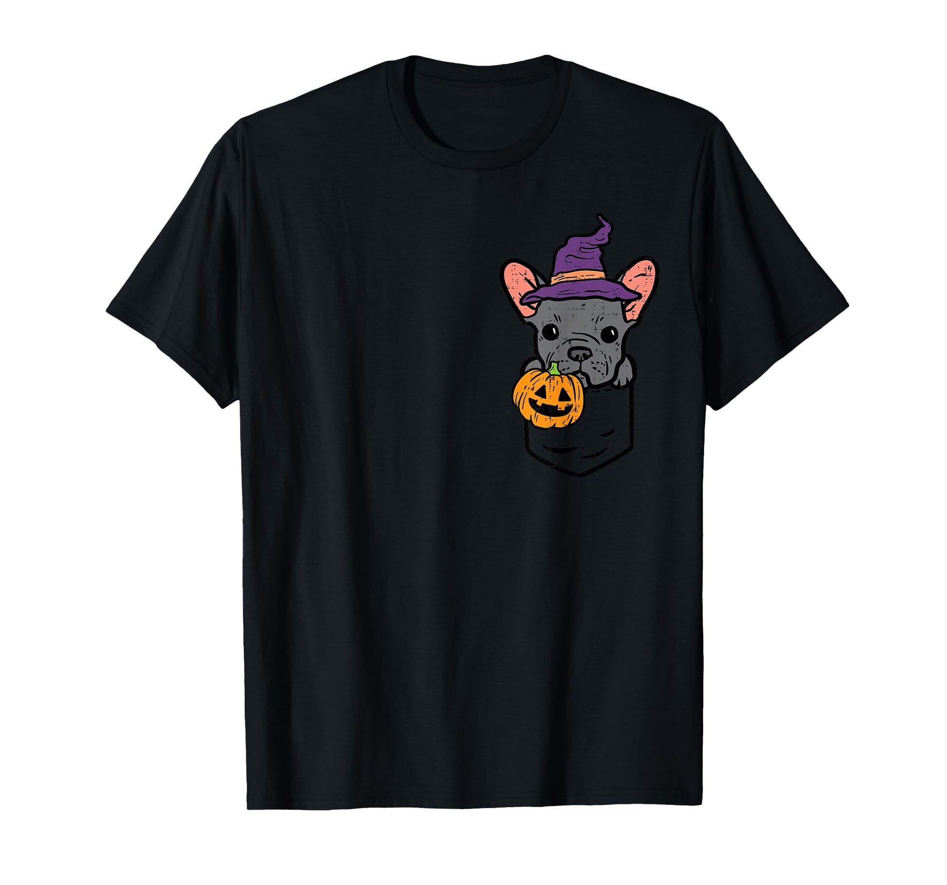 Pocket French Bulldgo Witch Pumpkin Halloween Frenchie Dog T-Shirt