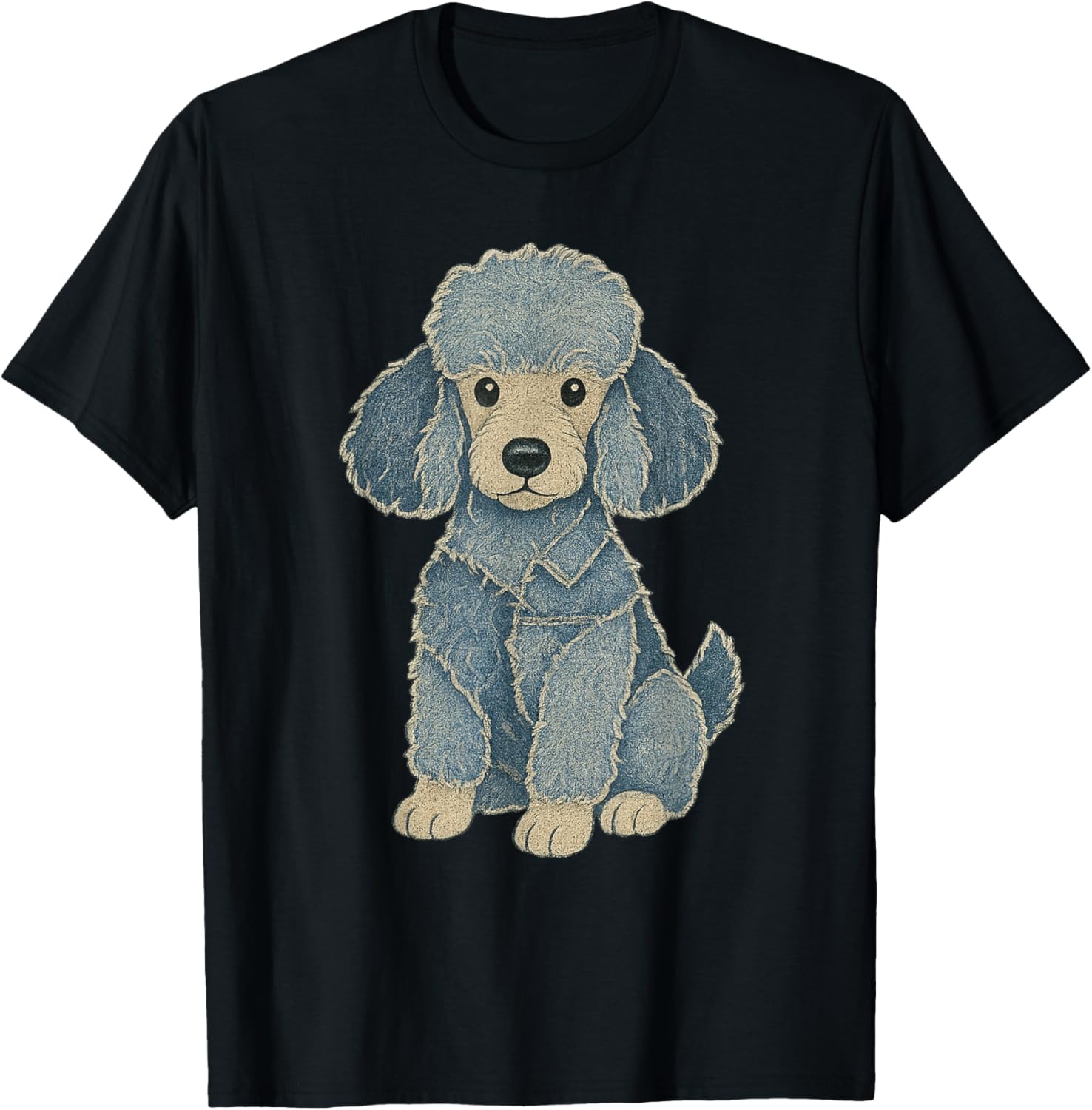 Poodle Dog Denim Patchwork Retro Funny Art Design T-Shirt