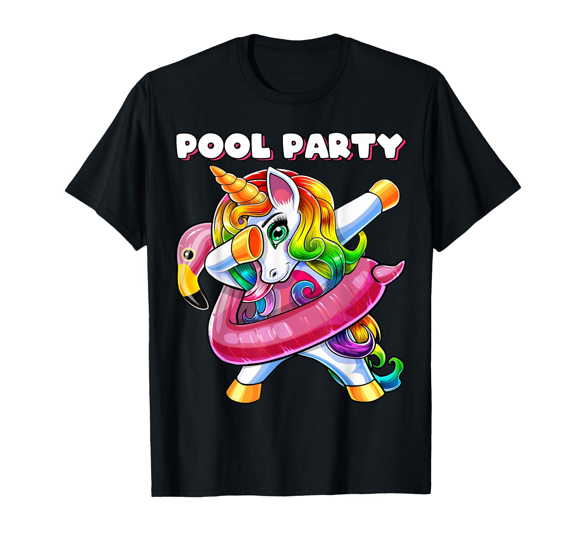 Pool Party Flamingo Float Dabbing Unicorn Girls Women Summer T-Shirt