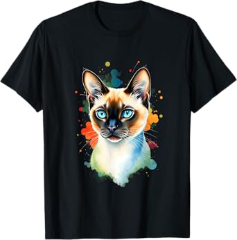 Pop Art Watercolor Siamese Cat Artistic Color Splash Design Men Women Kids T-Shirt