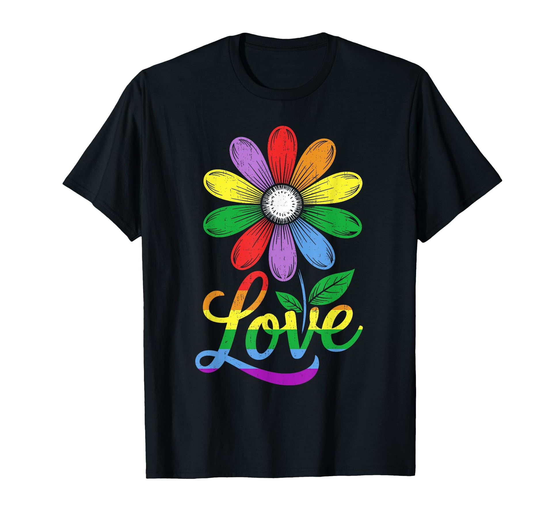 Pride Shirts Retro Flower Rainbow Ally LGBTQ Gay Pride Gift T-Shirt