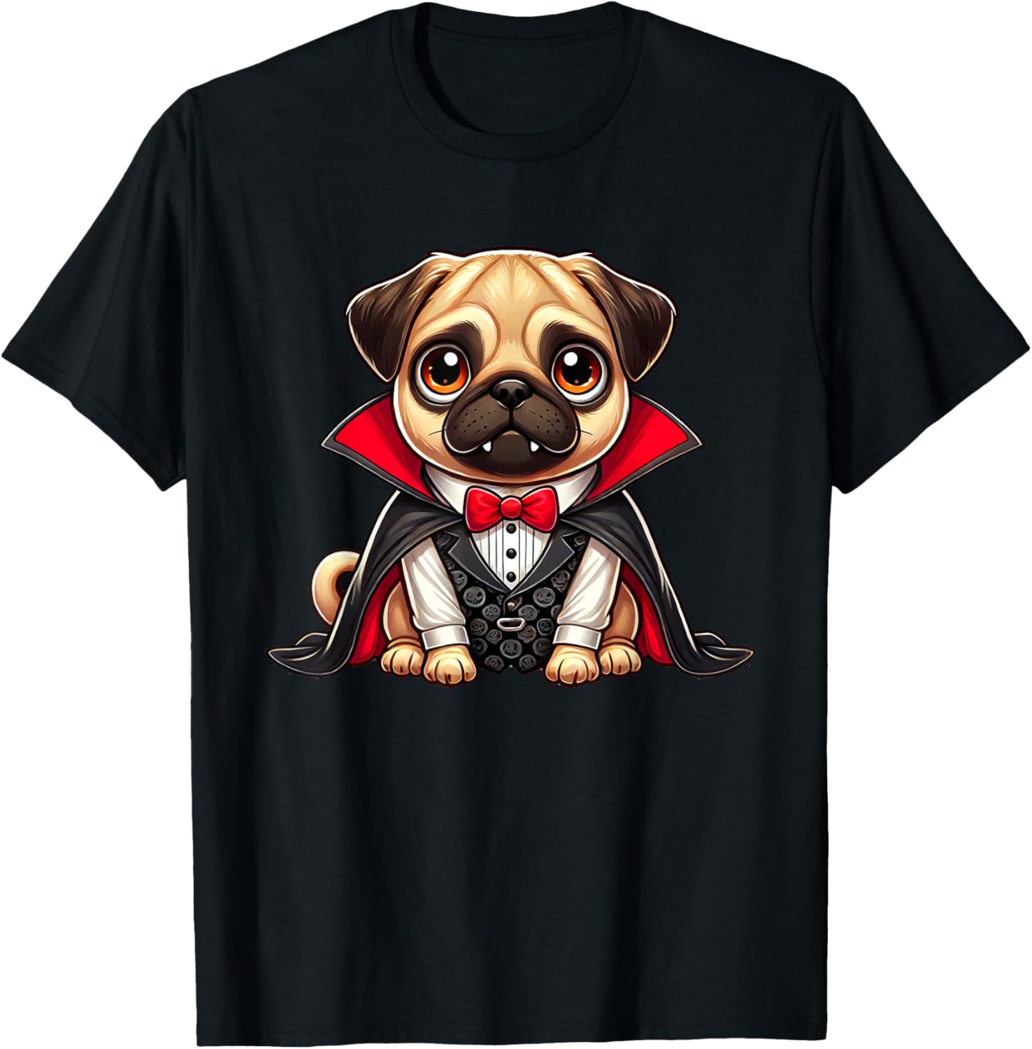 Funny Pug Dracula Dog Halloween Costume Boys Girls Kids T-Shirt