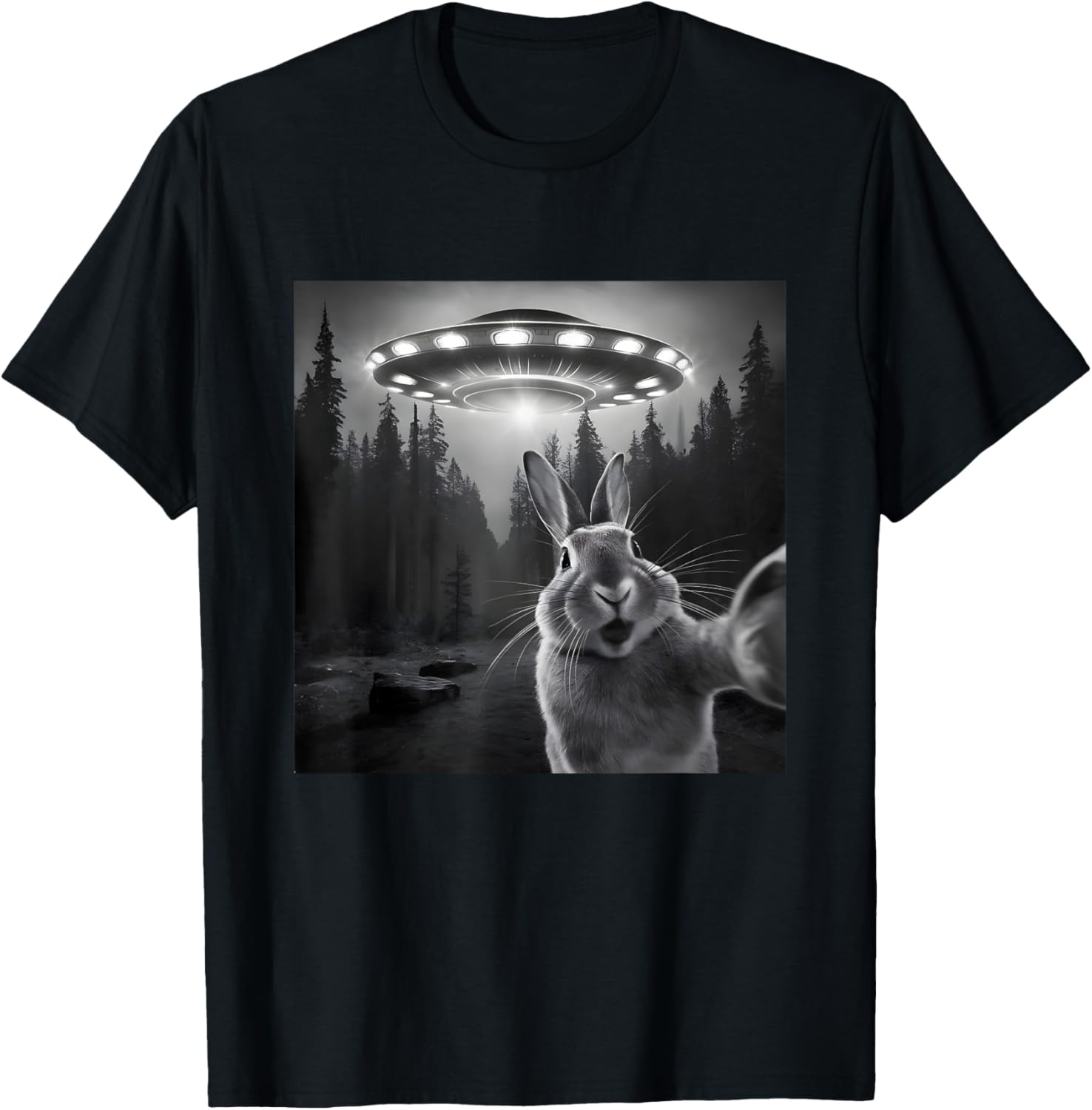Rabbit Selfie With UFO - Funny Bunny Graphic Alien Lover T-Shirt