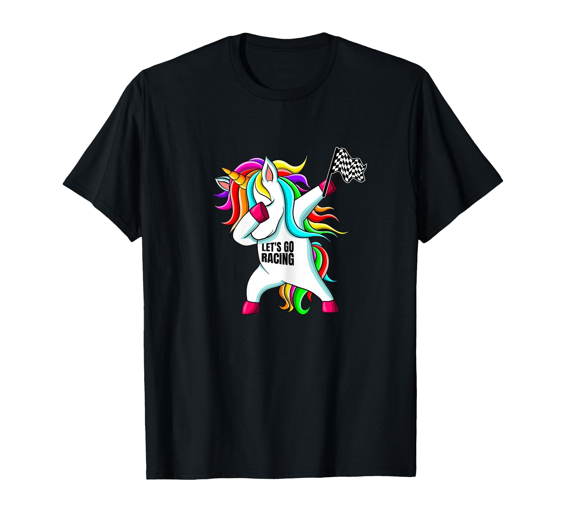 Race Car Racing Dabbing Unicorn Checkered Flag T-Shirt