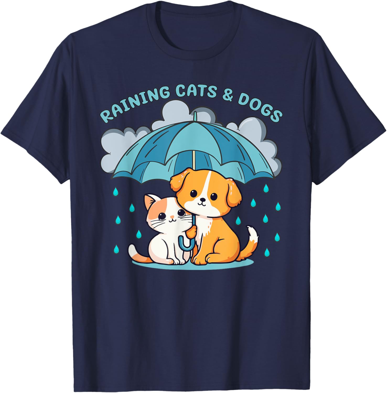 Raining Cats and Dogs Canine Feline Puppy Kitty Funny Idiom T-Shirt