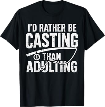 Rather Be Casting Than Adulting Funny Fishing T-Shirt
