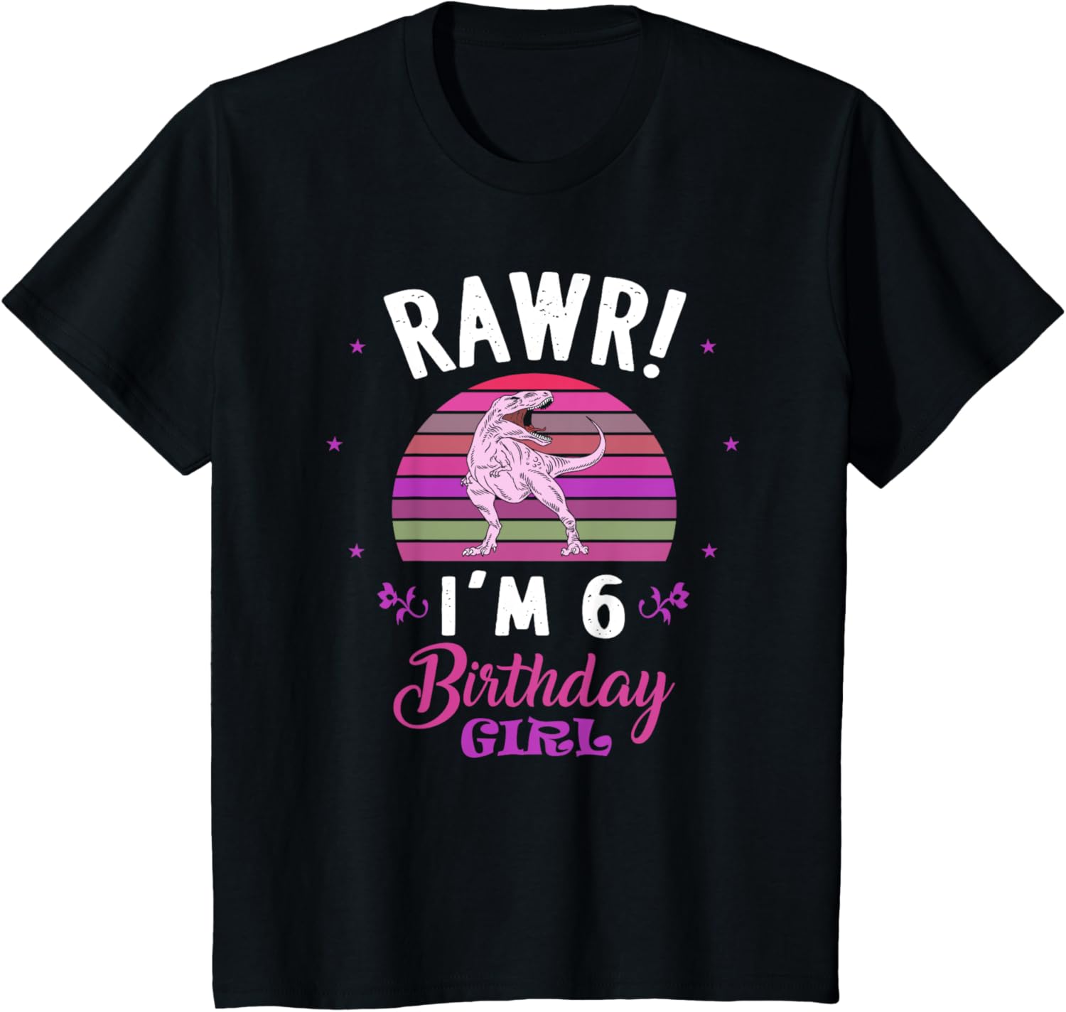 Rawr I'm 6 Dinosaur Birthday - 6th Birthday 6 Year Old Girl T-Shirt