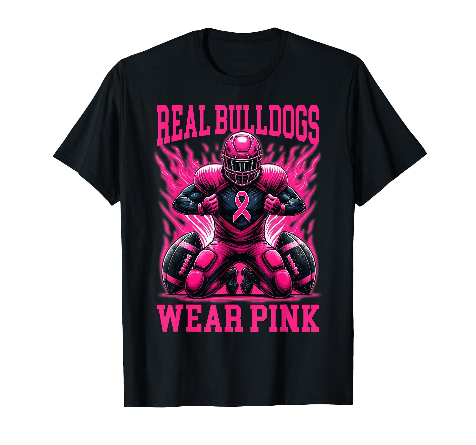 Real Bulldog Wear Pink Ribbon Tackle Breast Cancer Football T-Shirt