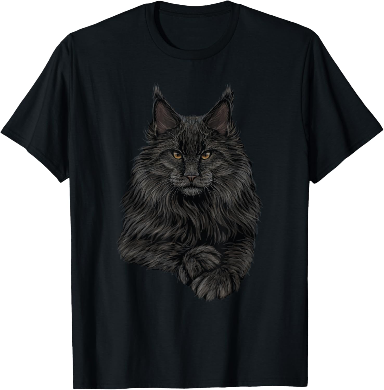 realistic cute Maine Coon cat sitting for lovers animals T-Shirt