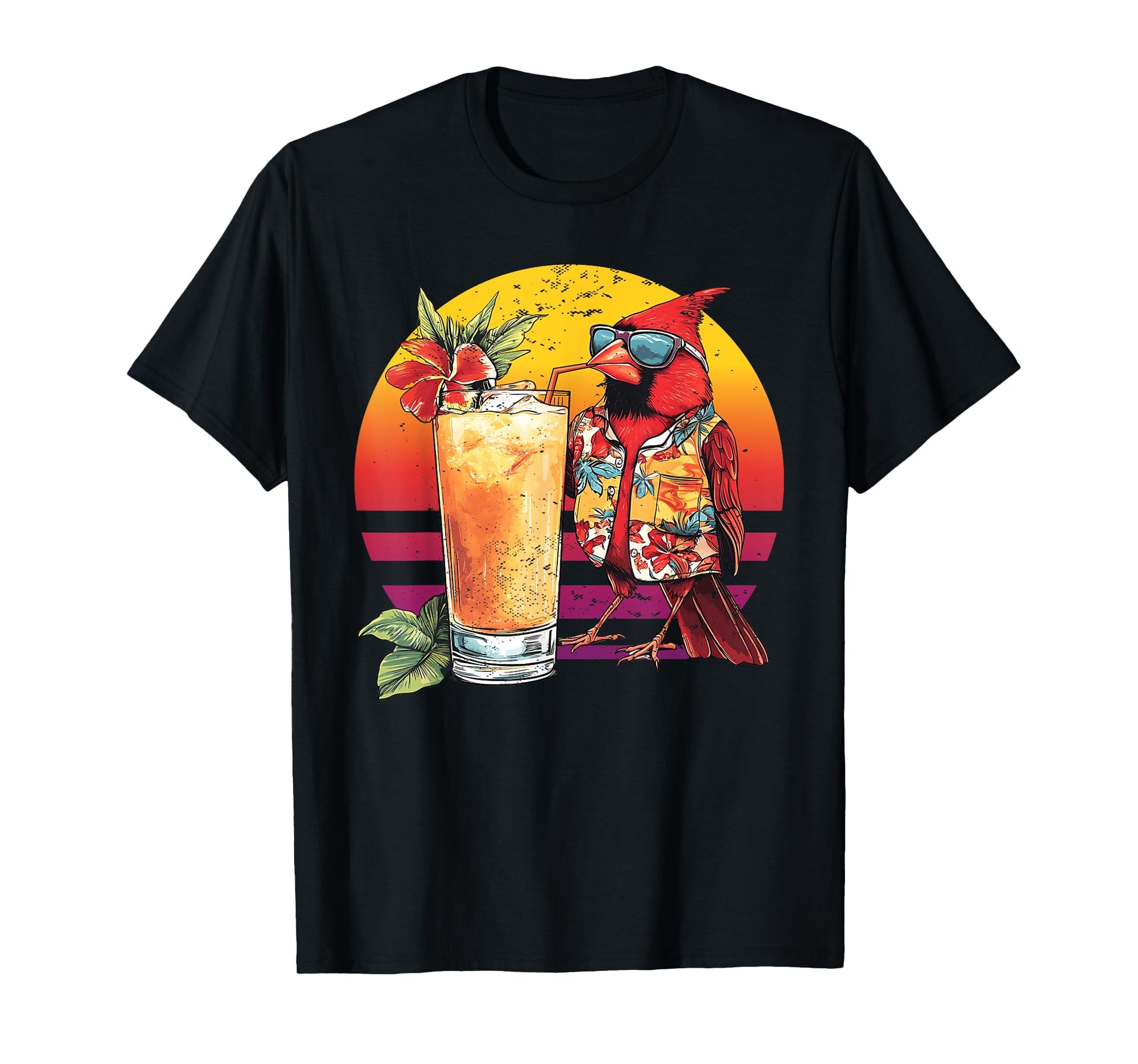 Red Cardinal Bird Drinking Cocktail Hawaiian Retro Summer T-Shirt