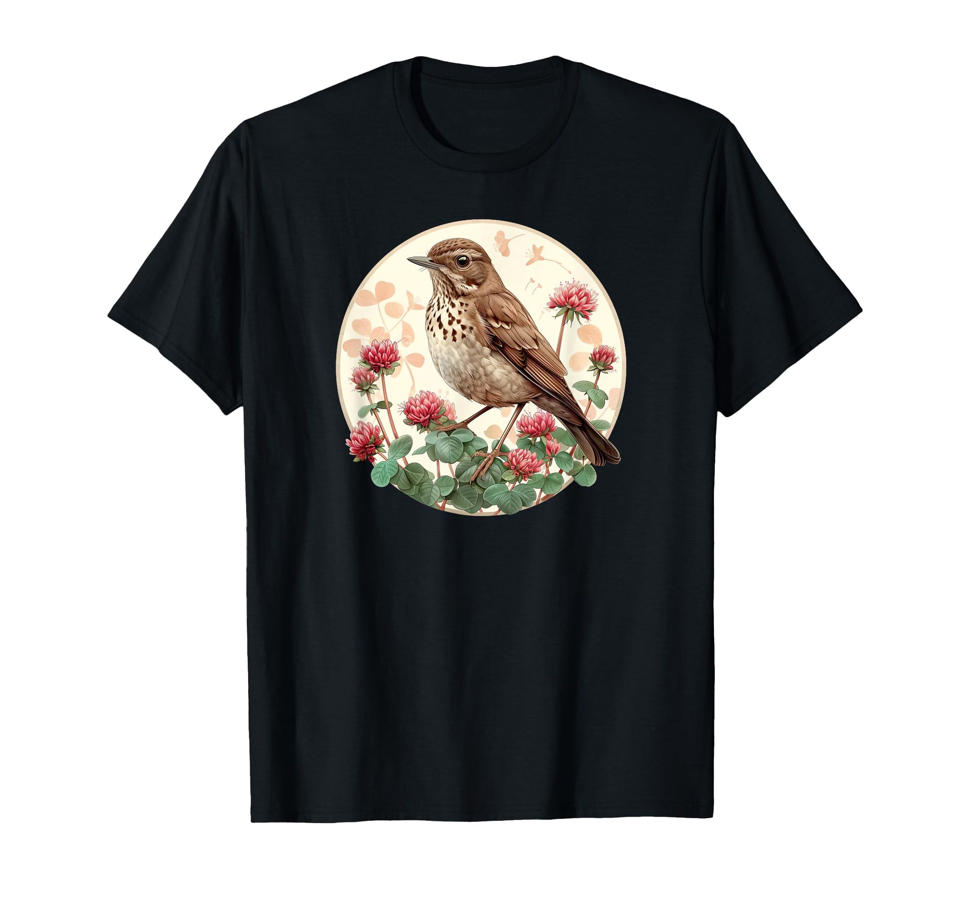 Red Clover Flower - Hermit Thrush Bird T-Shirt