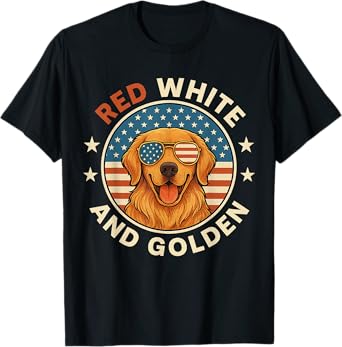 Red White and Golden Retriever Patriotic American Flag Dog T-Shirt
