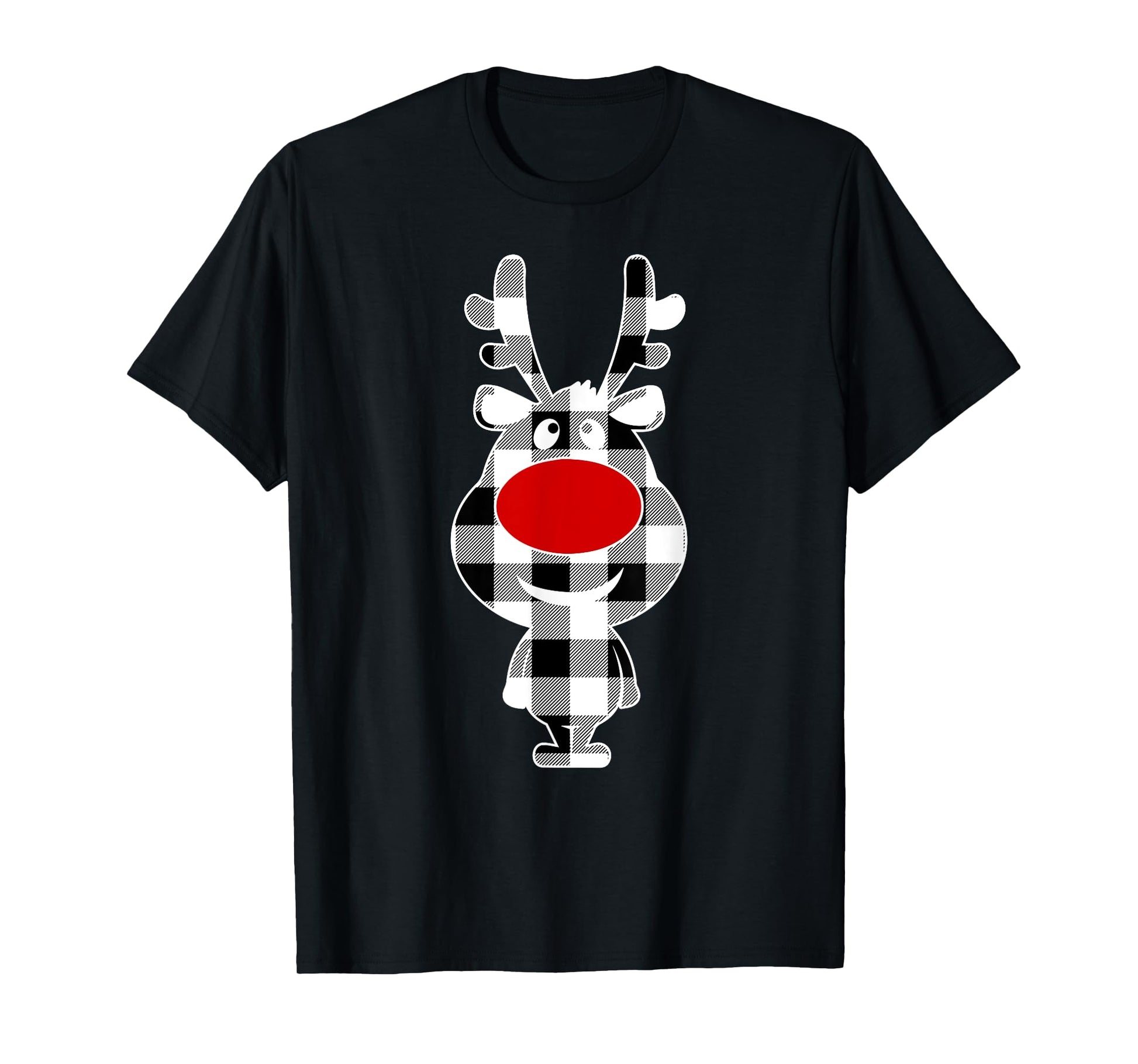 Reindeer Black & White Buffalo Plaid Merry Christmas T-Shirt