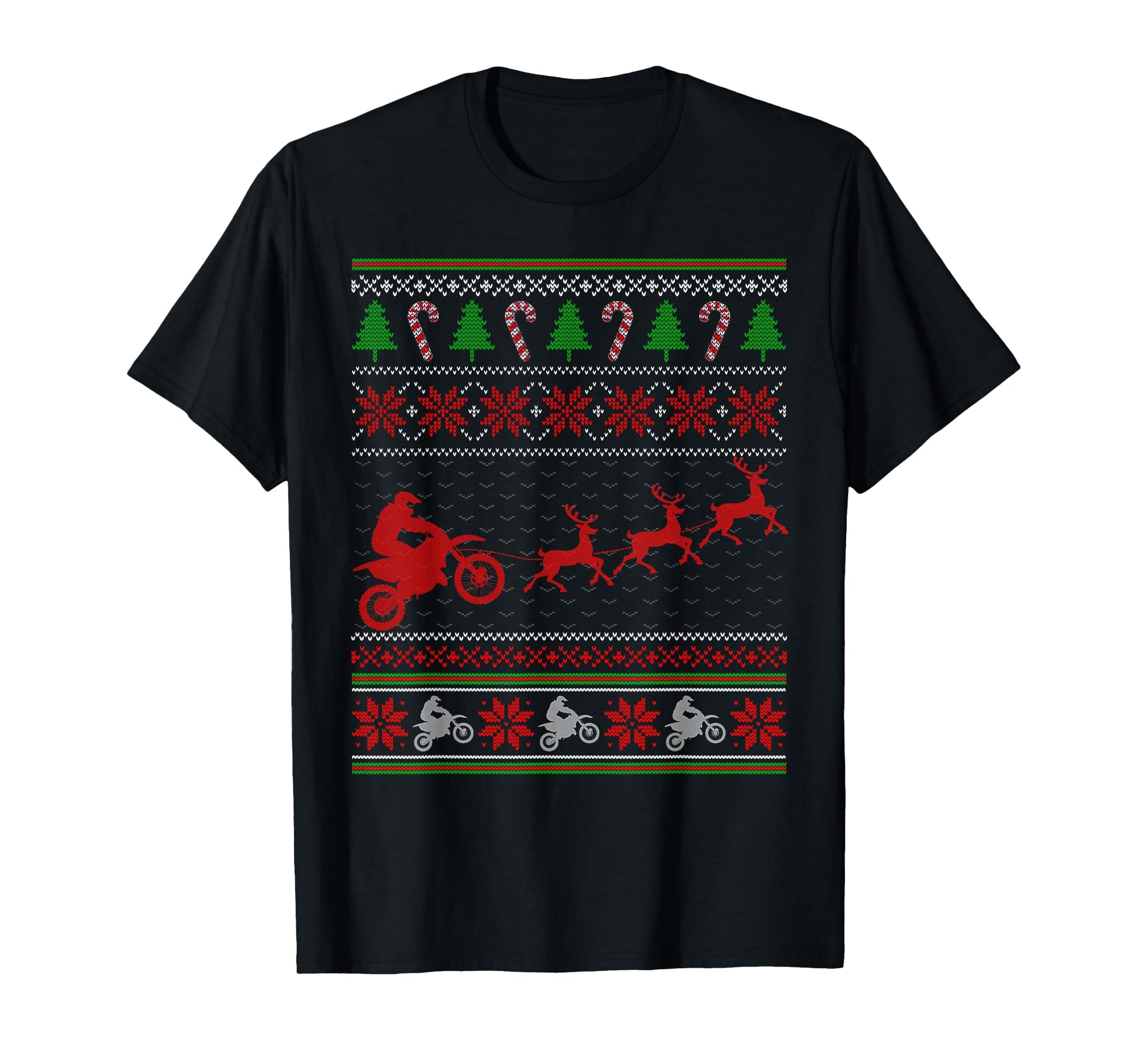 Reindeer Pulling Dirt Bikes Ugly Christmas Sweater Boys Men T-Shirt