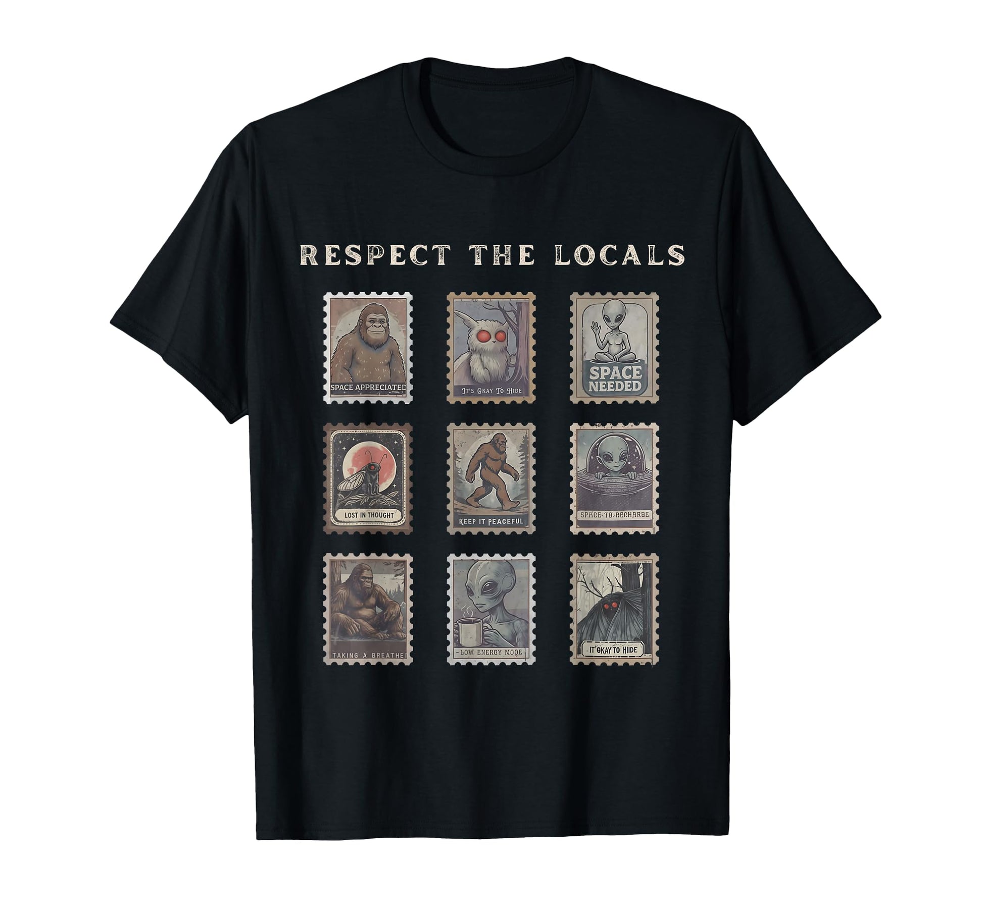 Respect The Locals Cryptid Mothman Hiking Bigfoot Introverts T-Shirt
