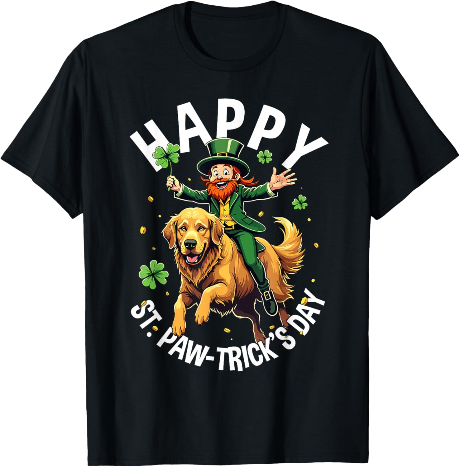 Golden Retriever St. Patrick's Day Happy St Paw-Trick's Pun T-Shirt