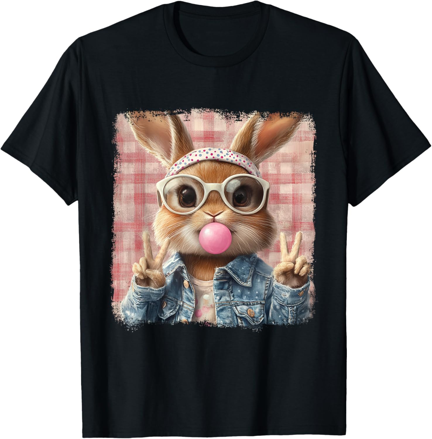 Retro Cool Bunny Bubblegum Peace Sign Aesthetic Easter Day T-Shirt
