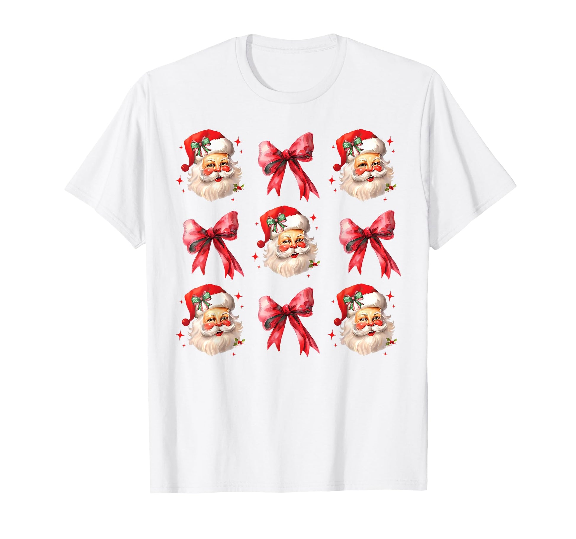 Retro Coquette Santa Red Bows Christmas For Women Girl T-Shirt
