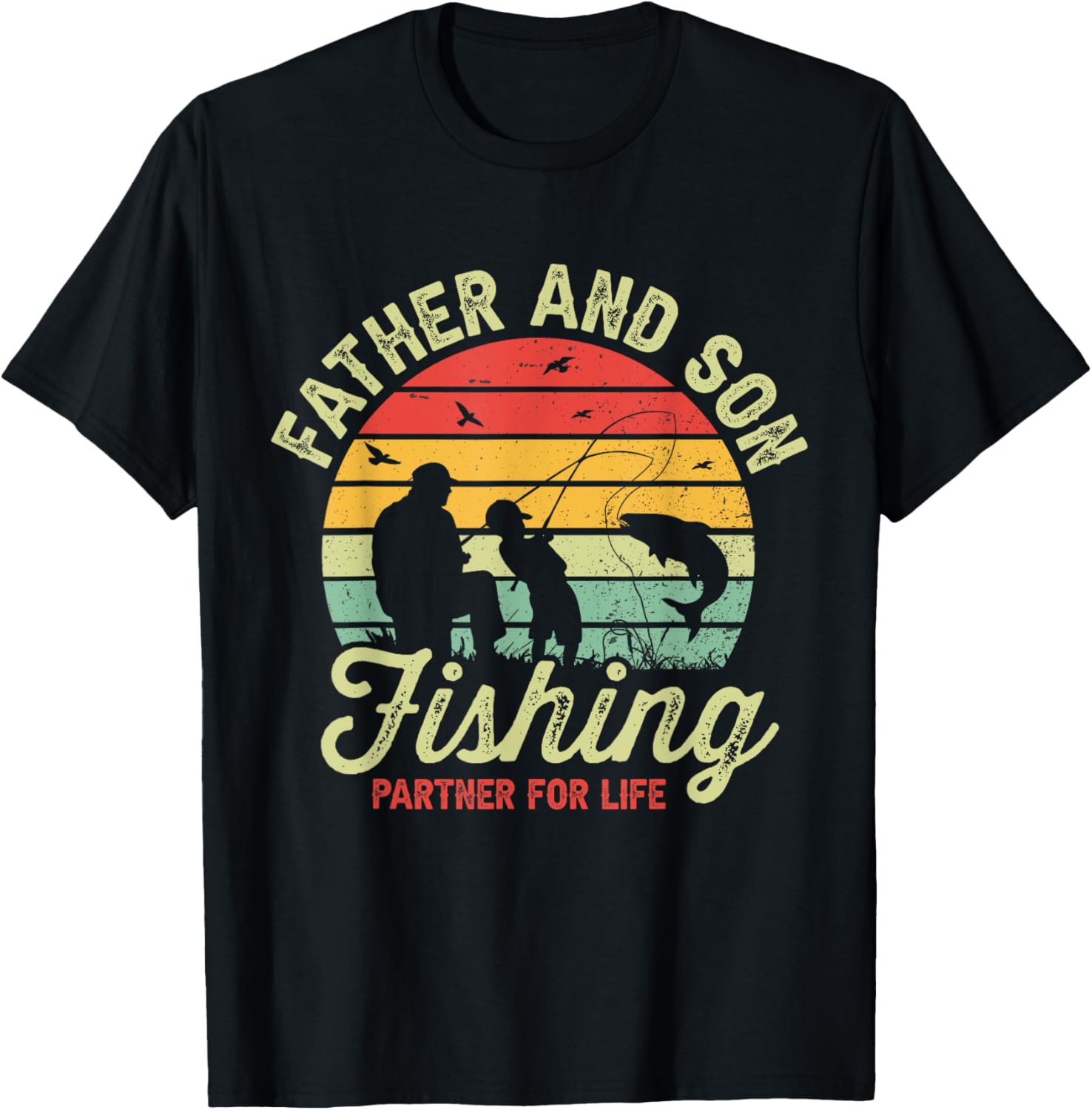 Retro Dad And Son Fishing Partners For Life Fathers Day T-Shirt