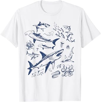 Retro Ocean Animal Wildlife Shark Fish Octopus Nature T-Shirt