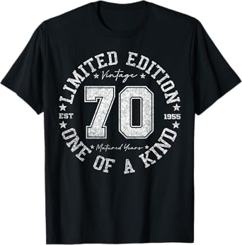 Retro One Of a Kind Shirts For Men Women 2025 70th Birthday T-Shirt, Unisex-Adult, Short Sleeve, Black, Small, Vintage, Number, Cotton Blend, Machine Wash, T-Shirt