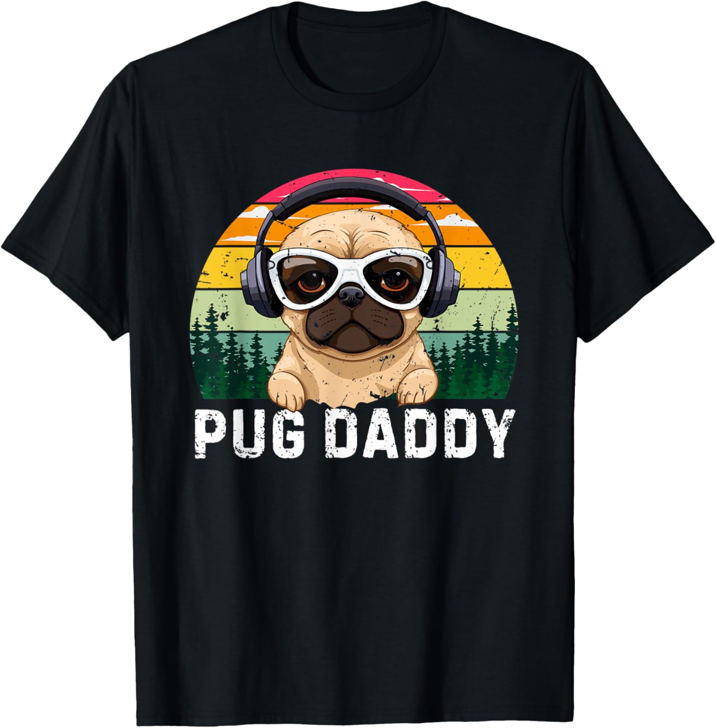 Retro Pug Dog Daddy For Dad Vintage Father's Day T-Shirt
