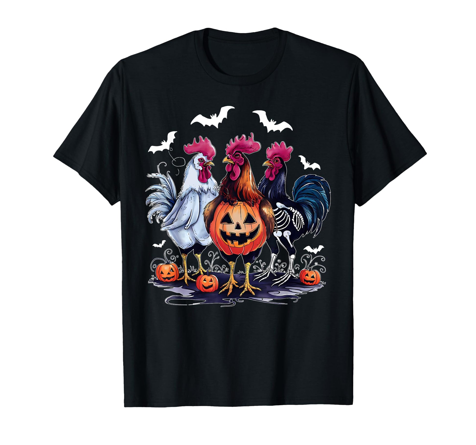 Retro Pumpkin Rooster Bat Chicken Farm Animal Spooky Party T-Shirt
