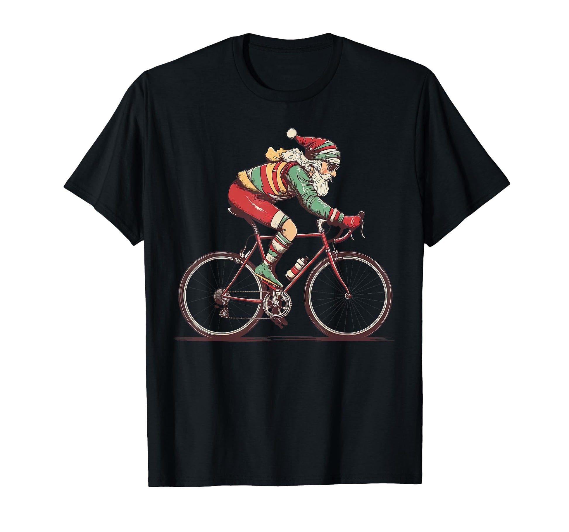 Retro Santa Riding Bicycle Cycling Biking Elf Bike Christmas T-Shirt